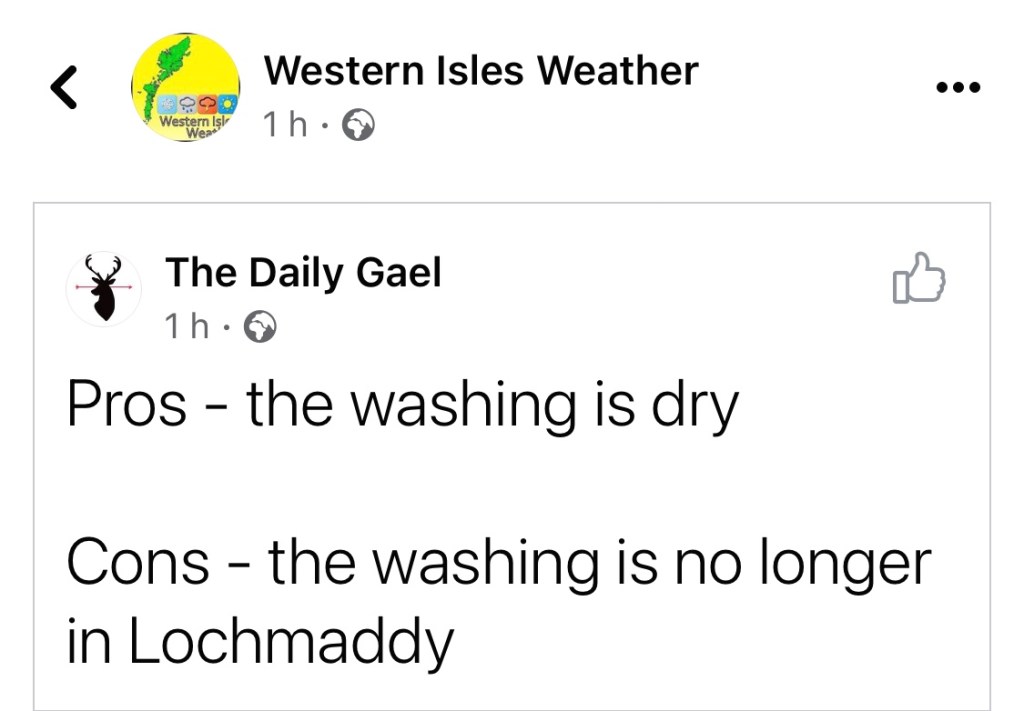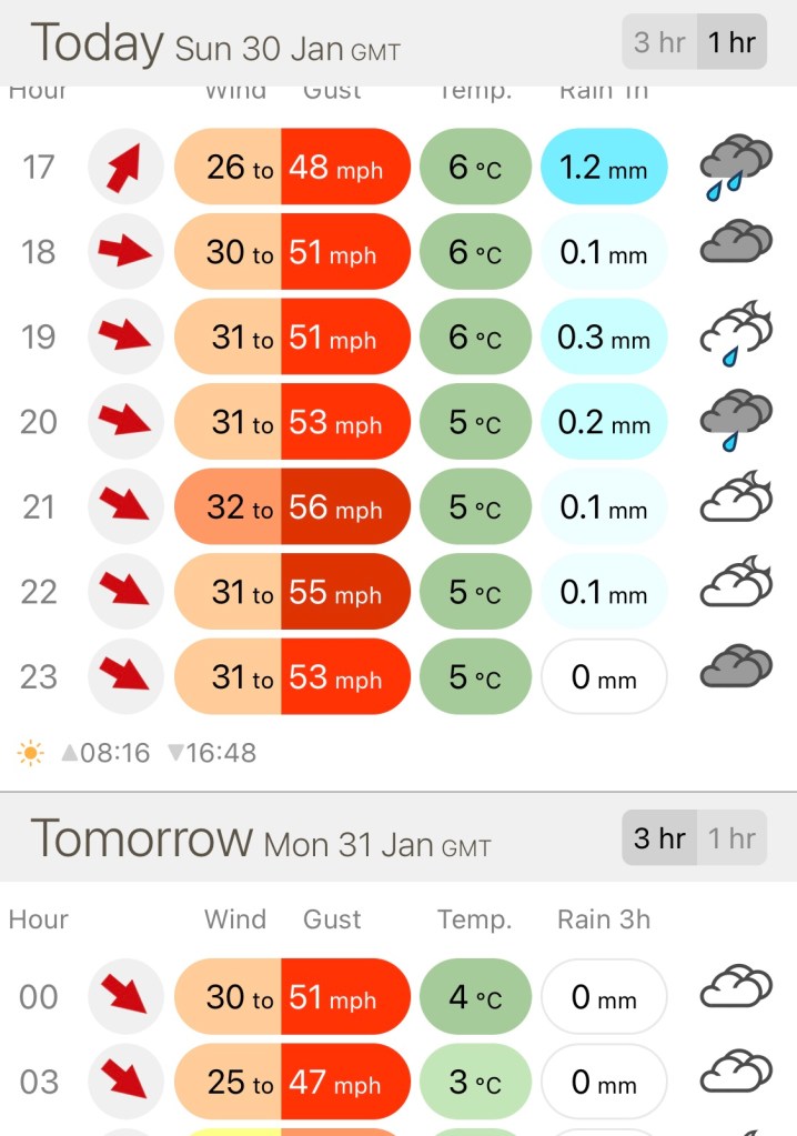 It’s a beautiful day today. No sign of the overnight Storm Corrie as far as I can see.