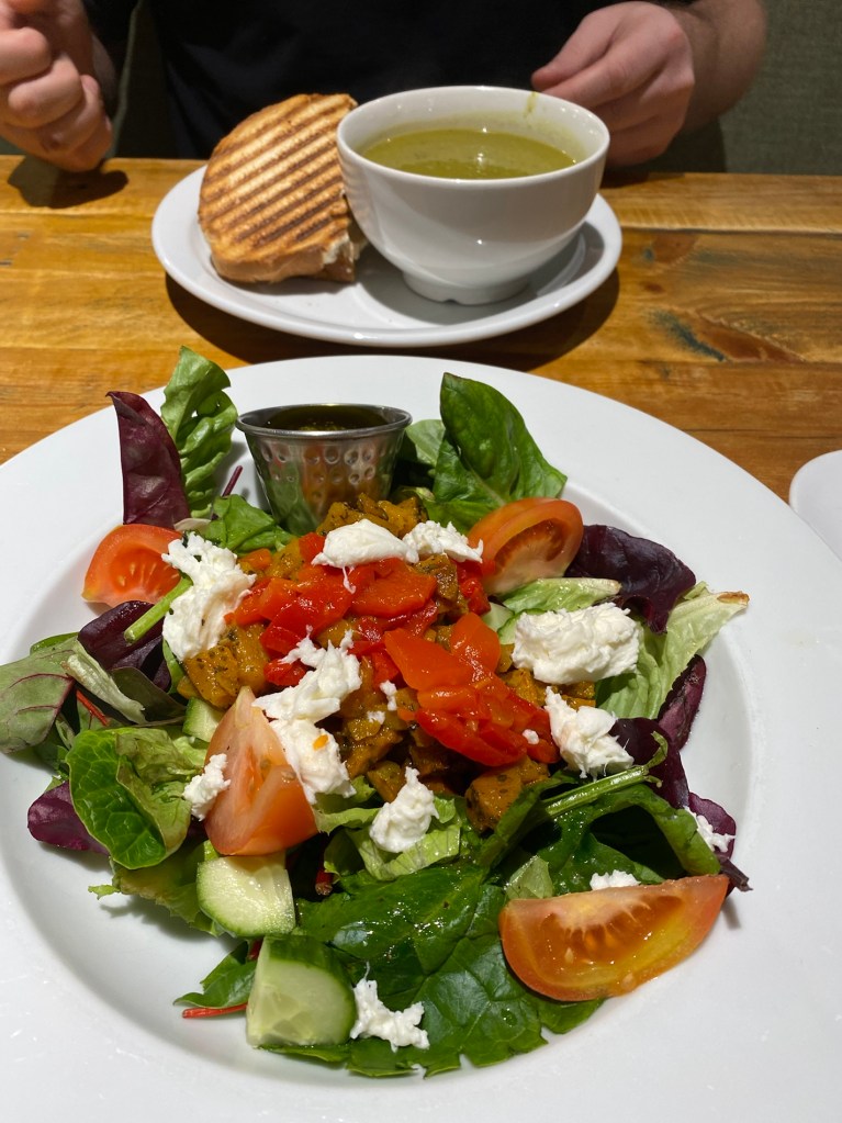 We went upstairs and had lunch in the Summit Café. I chose a healthy roast squash and pepper salad and pea and mint soup! It was soooooo good!!