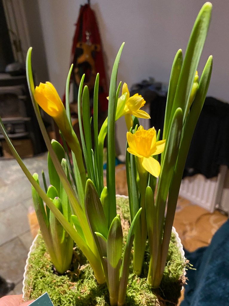 We got this lovely pot of hyacinths when Lorna came for a meeting with Craig a week or so back. They are starting to bloom and I was so pleased to see there are mini daffodils in there!