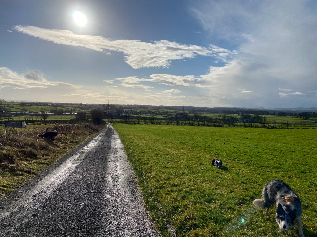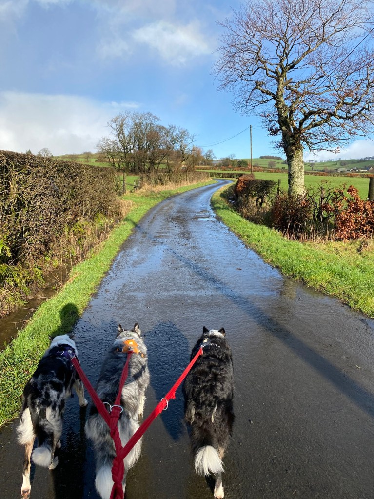 So home and did a wee bit of work but enjoyed it and then out with the puppers… straight into sideways sleety snow. Another face exfoliation!!