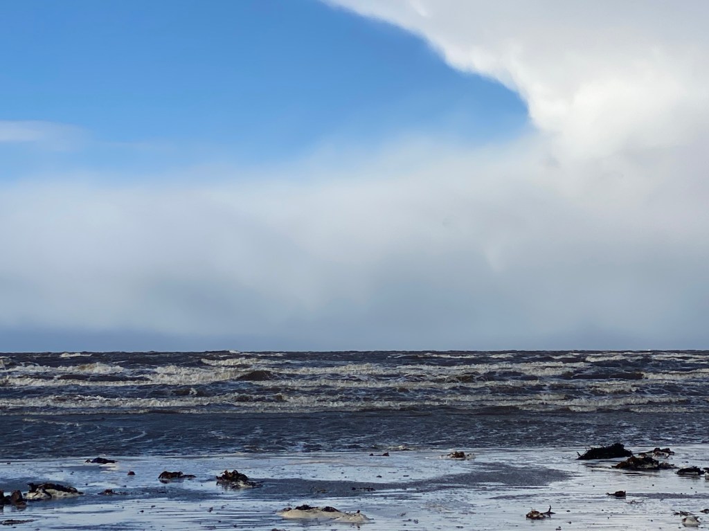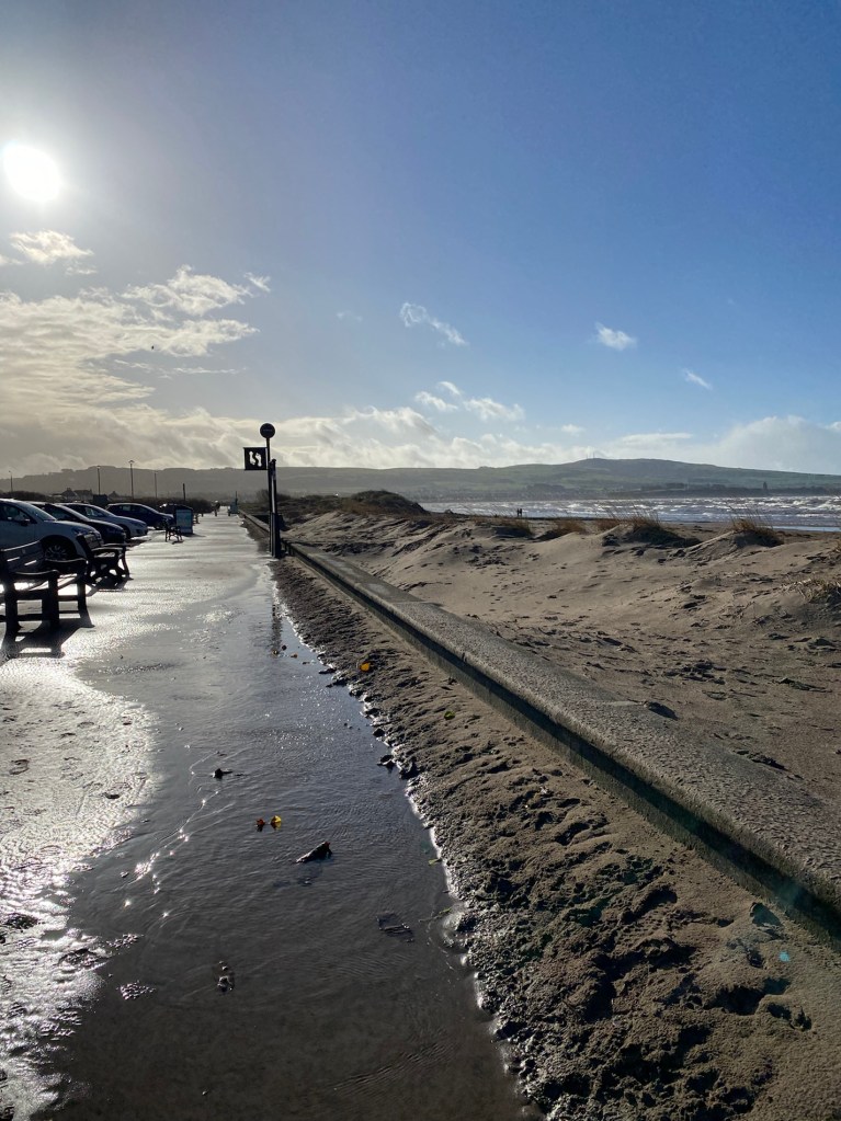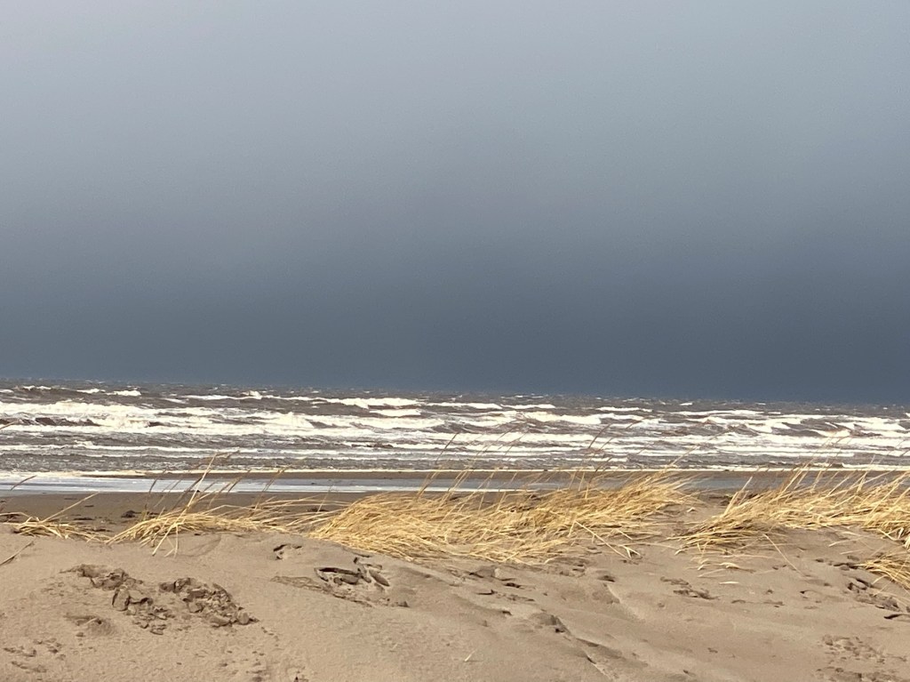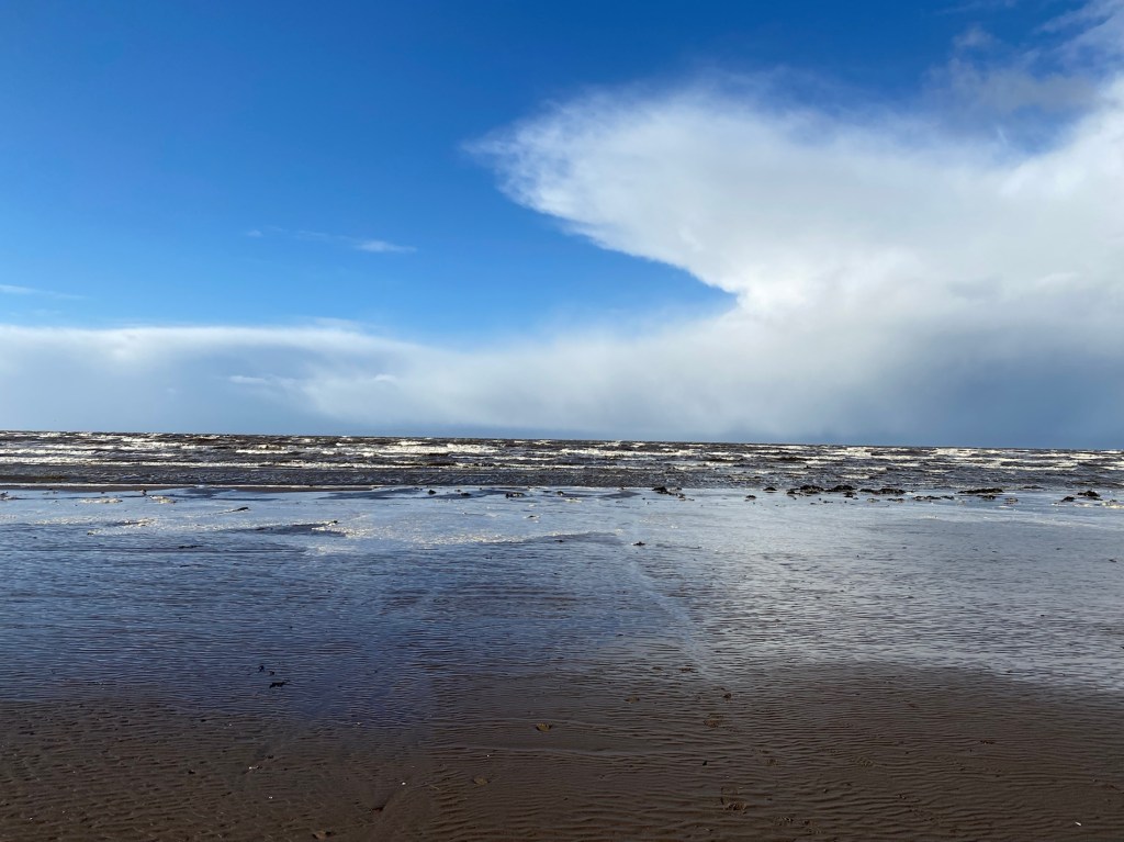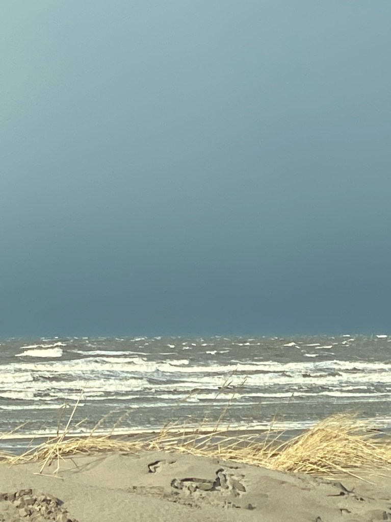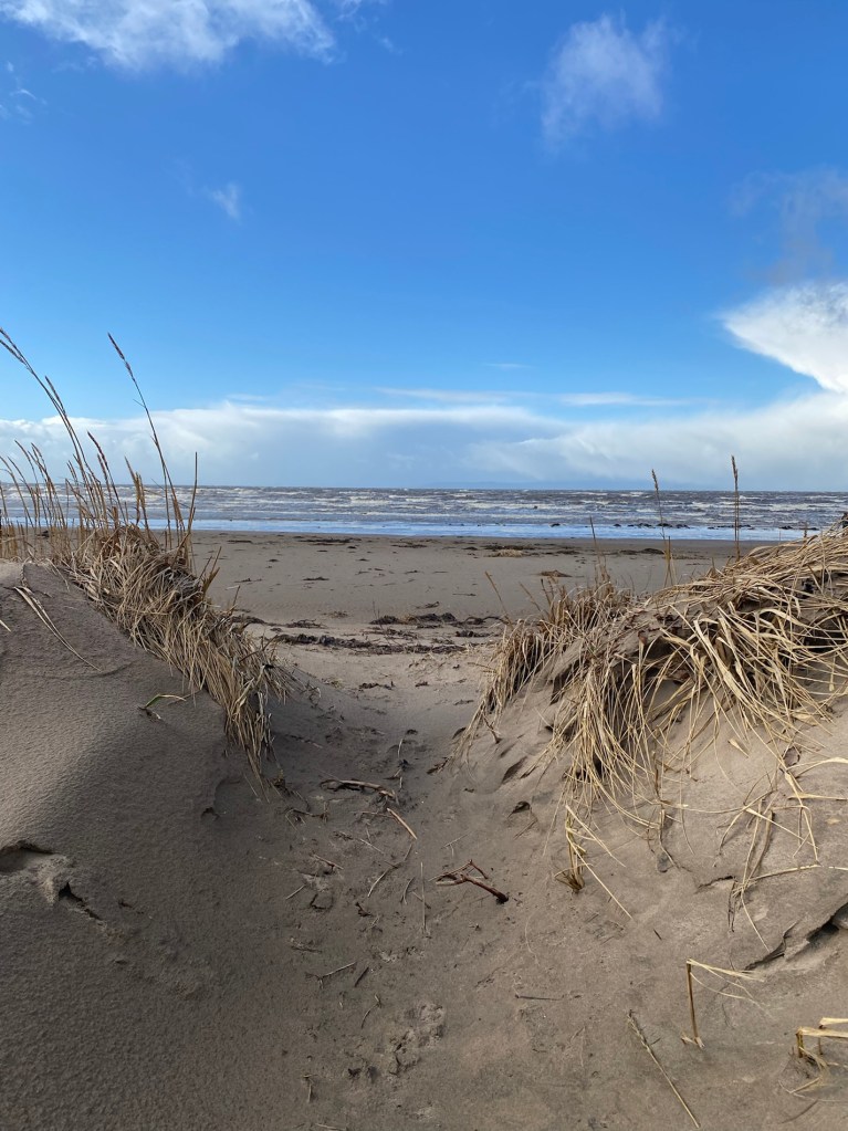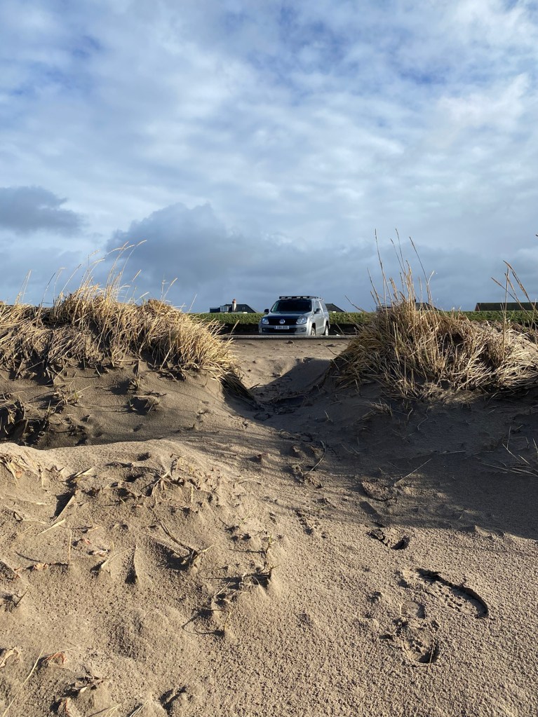 What you can’t see is that it’s so windy I couldn’t keep my woolly hat on! The wind was determined to blow it off my head. Also the sand is blasting at you.