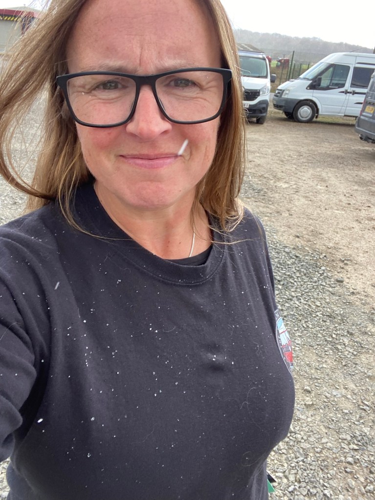 This is me outside in a snow flurry! Just to prove it. Yesterday I sat out on a deckchair to eat lunch and today…. Baltic!!