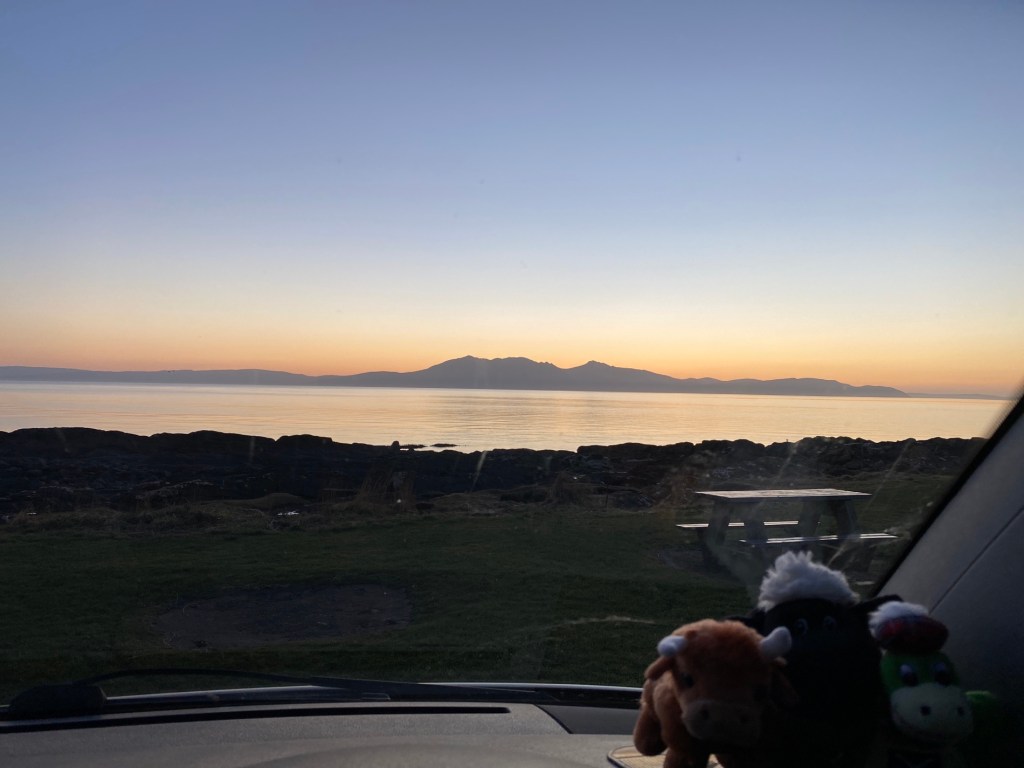 That’s Ailsa Craig in the distance. It’s really clear today. It’s cool but I have my trusty crochet blanket from the van in case it gets too cold.