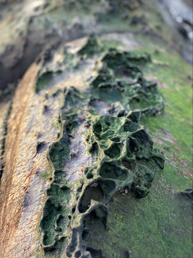 The seaweed is huge down here. This is so often under water that it’s fascinating to see how different the rocks are from down here. This was all under cover the last day I was here and it was so stormy.
