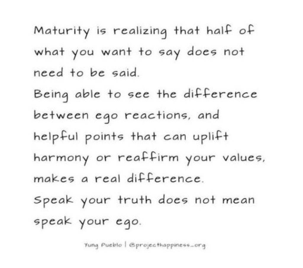 So much of what we say and how we react to people is our ego talking… being defensive.