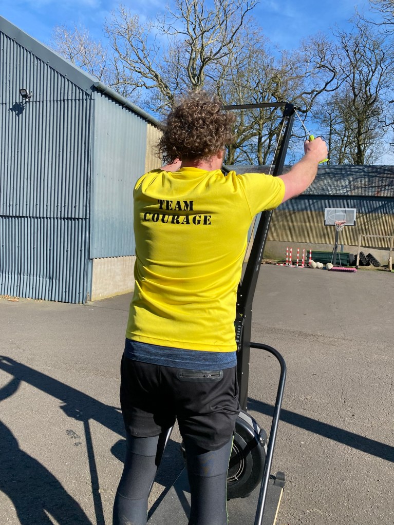 Craigie in Team Courage action on the Ski-erg putting in some km’s.
