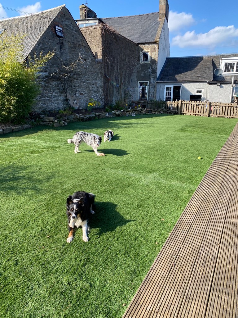 Having 3 Border Collies meant our natural grass was always in quagmire status but the artificial grass does need washing down.