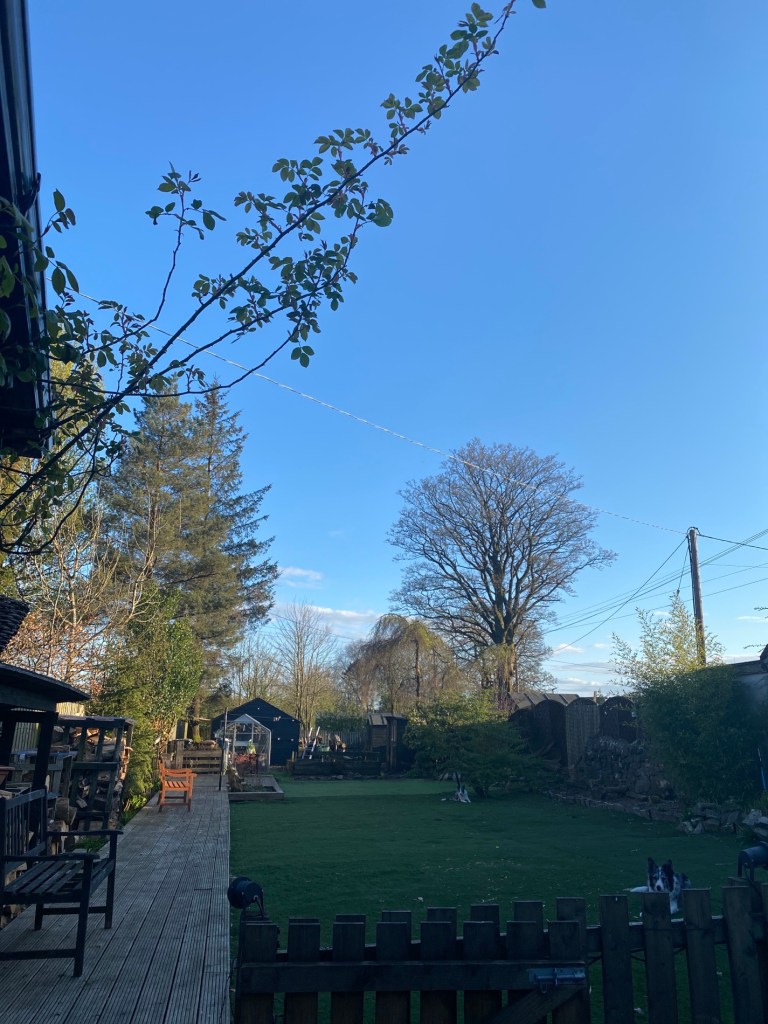 I had to get up through the night to take painkillers for my knee but I fell straight back to sleep again. I woke up at 7am and got up before 8am to sit in the garden with coffee.
