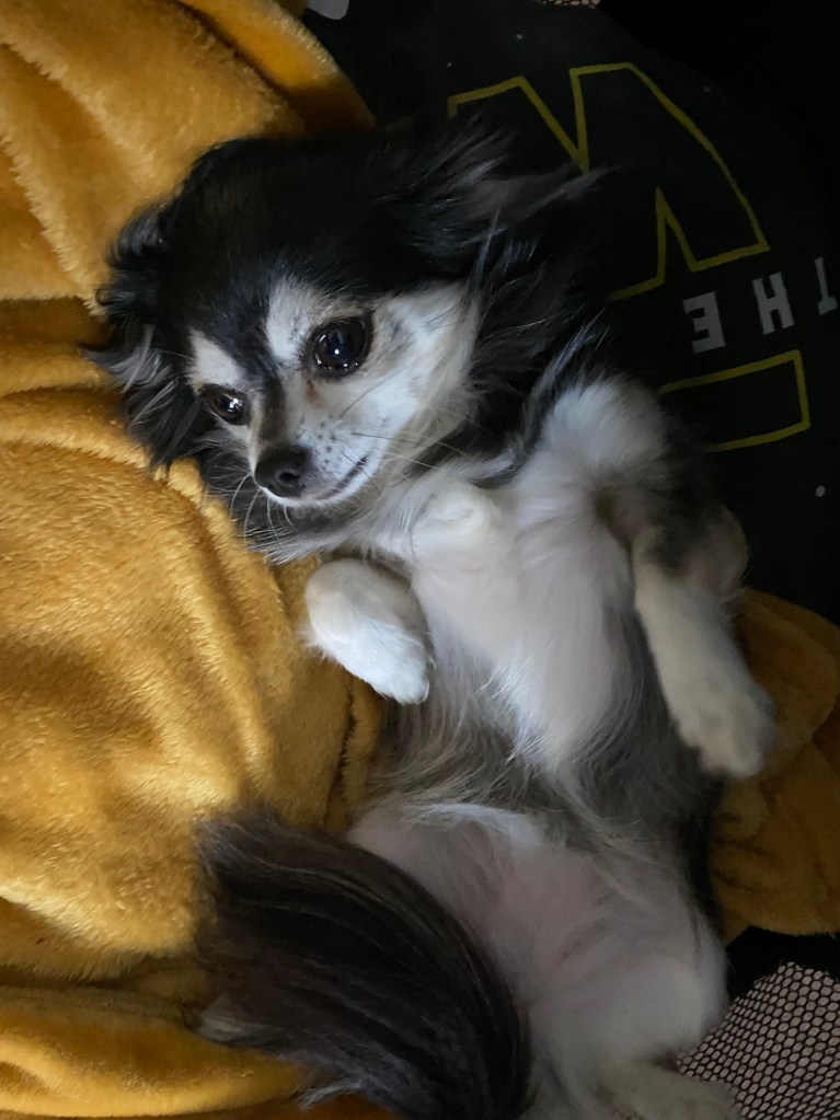 So I’m sitting on their couch crocheting a border around my blanket enjoying some peace and quiet away from Mr Man Flu 🤣🤣🤣 I have my mawlaw’s lovely lasagne in the oven and to be honest, Cookie doesn’t seem to care whether I’m here or not. She got most excited when I put Mr Man Flu on speaker and she was looking for her Uncle Craig!! I am slightly jealous. I usually get Cookie cuddles when I’m here.
