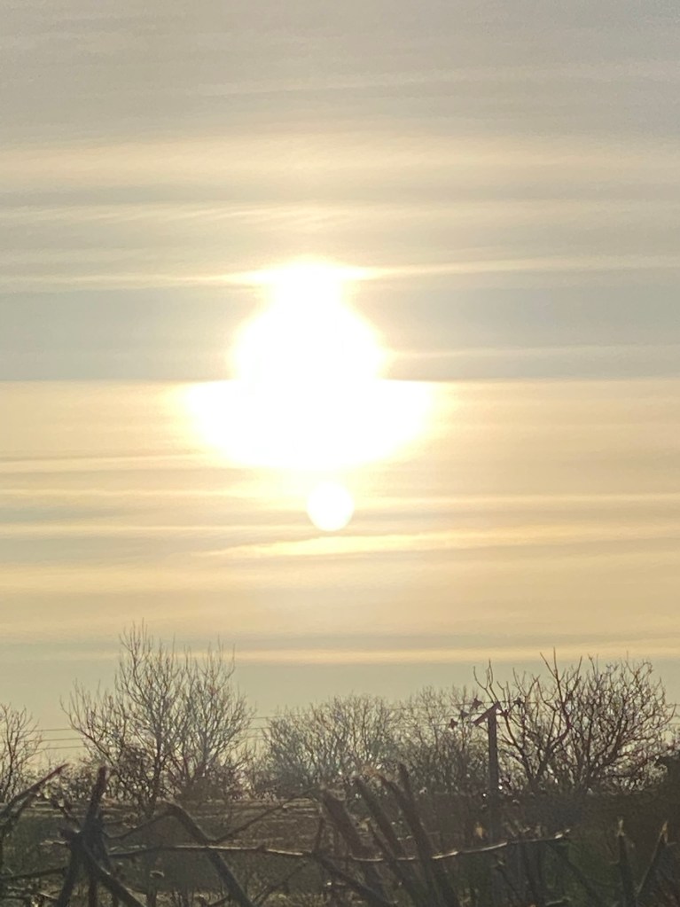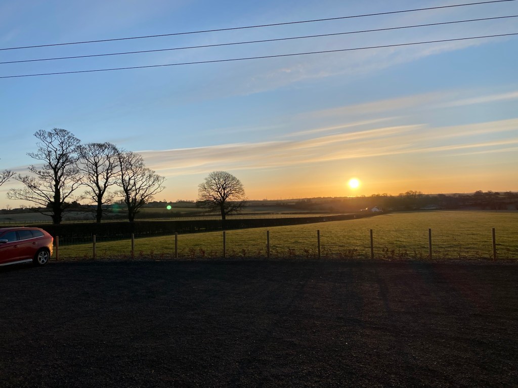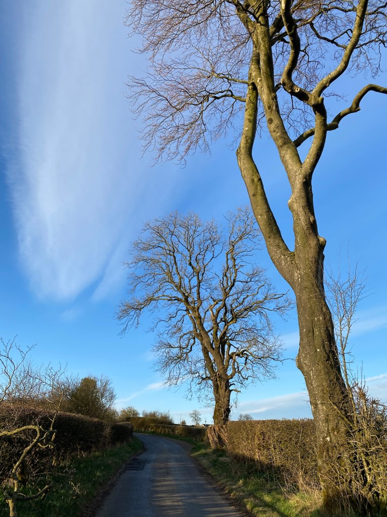 So back home and straight out with the dogs…. Some really strange clouds over the village hall!