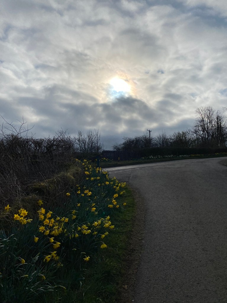 I got home and took Freya out for a short walk on the lead. These daffies looked lovely.