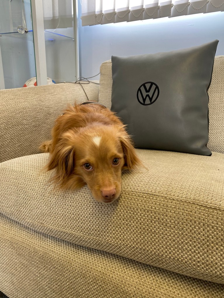 This is Peanut… ♥️ he’s been The Tartan mascot for the day and has been at work with his dad but looked after by his newly found Auntie Julie. 💙