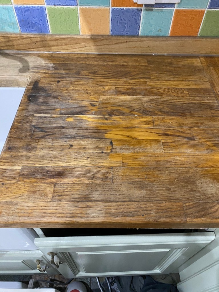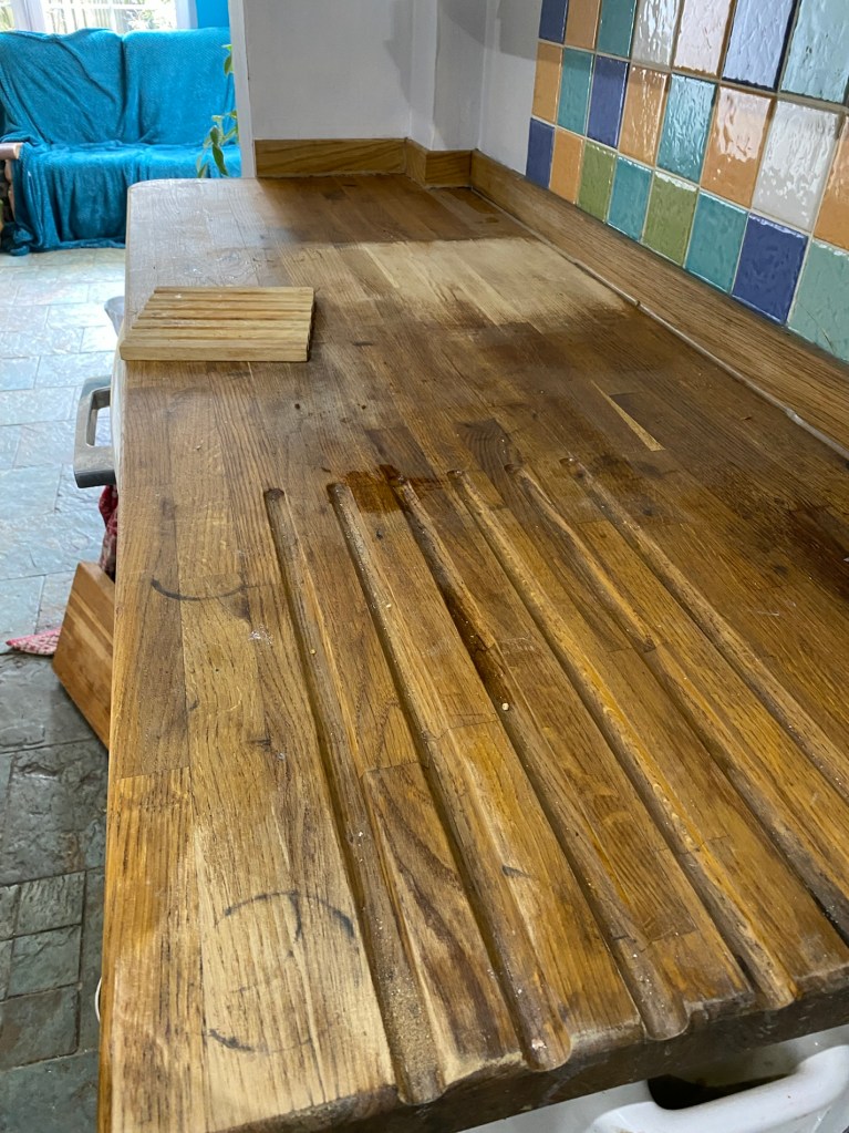 After about 3 hours it’s all sanded down and ready for the oil. I had to charge the sander battery 3 times during the job so to be fair, the actual sanding maybe didn’t take quite as long.