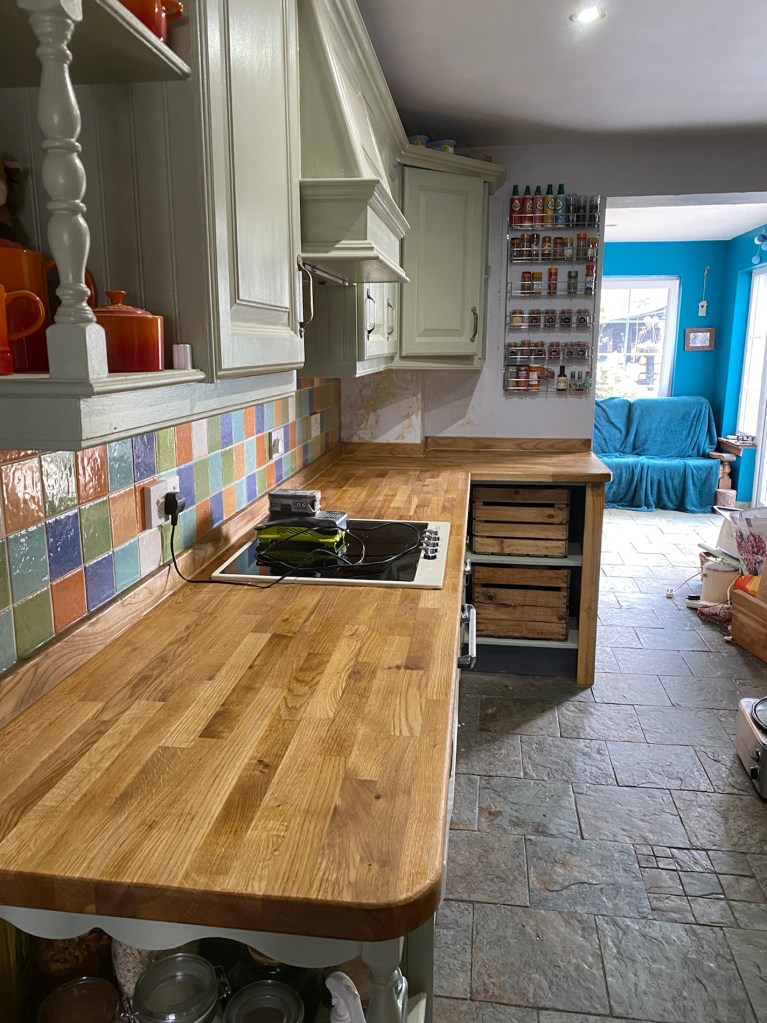 I’m tired today but I guess that’s hardly surprising. It’s been sunny but pretty cold outside so I decided to sand down the kitchen worktops as I need to get the kitchen finished and it’s driving me mad.