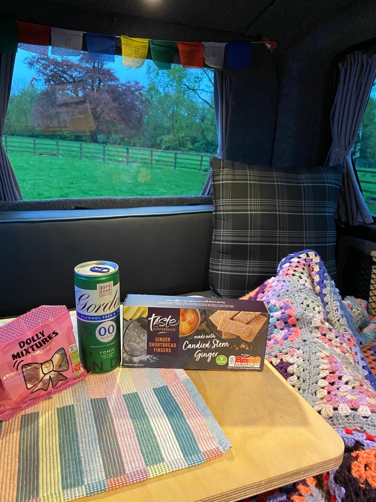 Iām in Catrine House campsite just outside Mauchline. Since I got here I have set up the van, been for a big exploreā¦.. cooked dinner, ate it and am now cooried up with an Alcohol Free Gin and tonic, some Dolly Moxtures and some Candied Stem Ginger shortbread⦠which is amazing. A present from Craig!