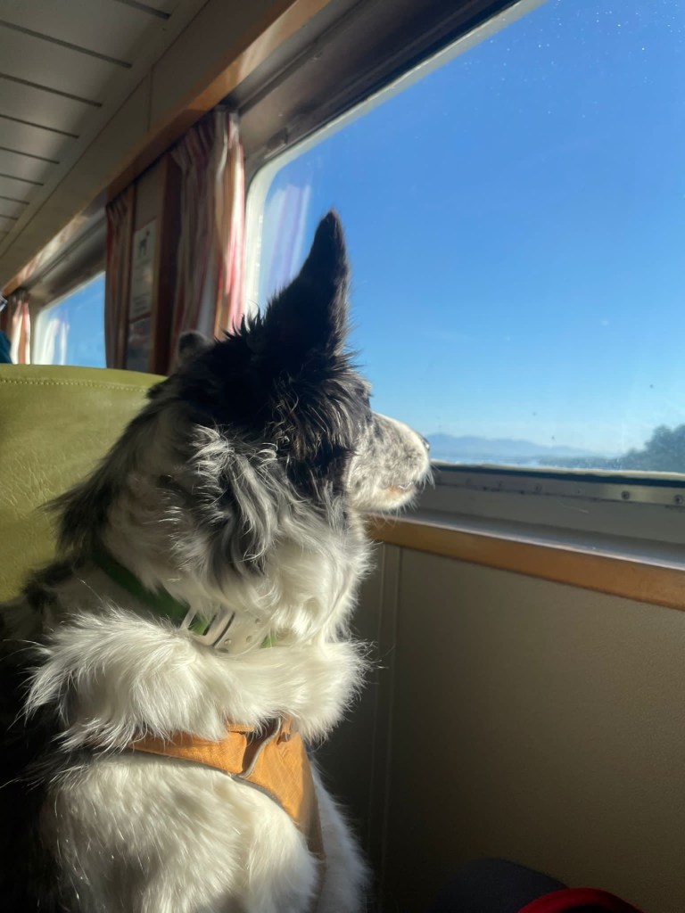 We are one of the first to board. Bhruic is not a huge fan of a ferry but she’s settled down now.