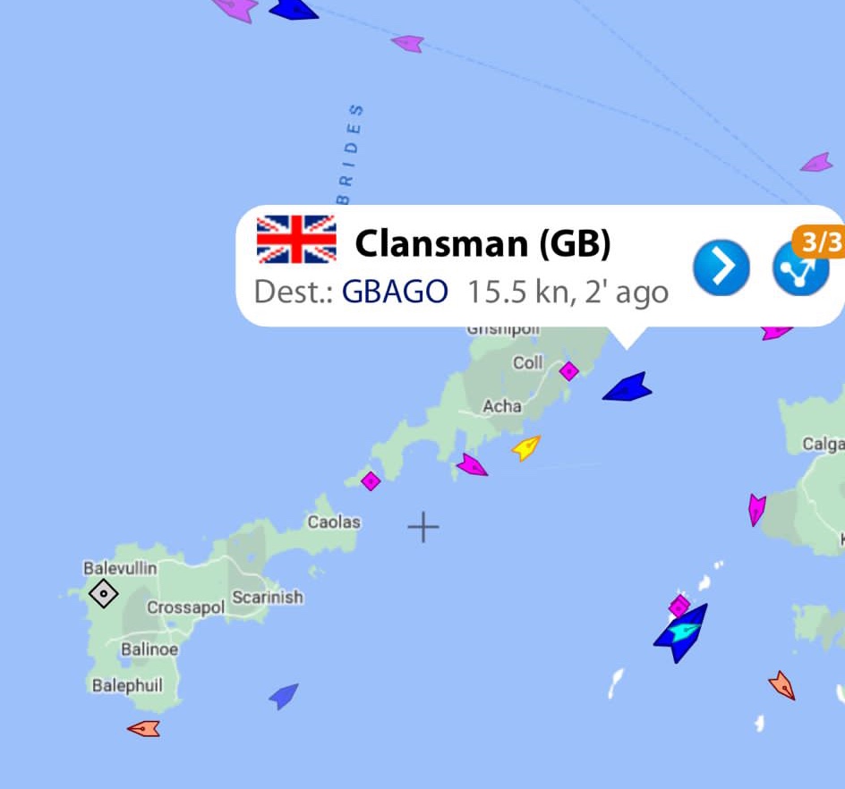I am in my element…… it’s 07.43 and we are already coasting up the side of Mull on board CalMac’s MV Clansman.