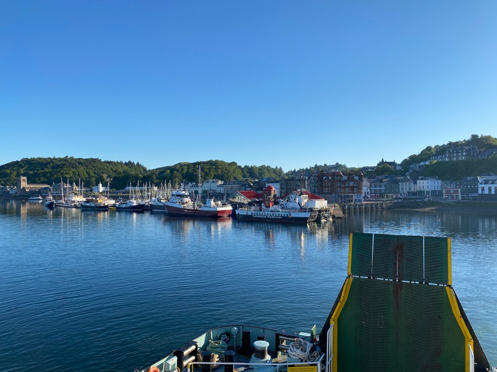So we had a fairly uncomfortable night in a random street in Oban. I slept a fair bit but we didn’t make the bed up so we weren’t that comfortable… I woke about 4am and it was really cold. So by 5.15am we were in the queue for the ferry. It’s a beautiful day.