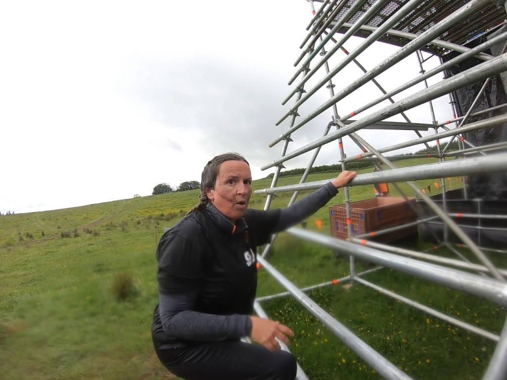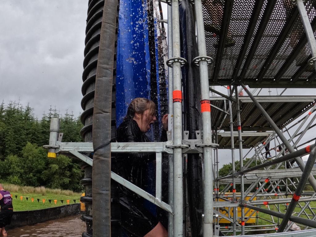 This next one caught me out.ā¦. You had to climb up a ladder being showerd by very cold water. This is Lynsey showing how itās done.