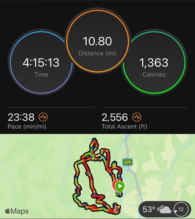This is Lynseyās watch⦠took us 4 hours as she forgot to switch it off over the finish line and was 10.8 miles.