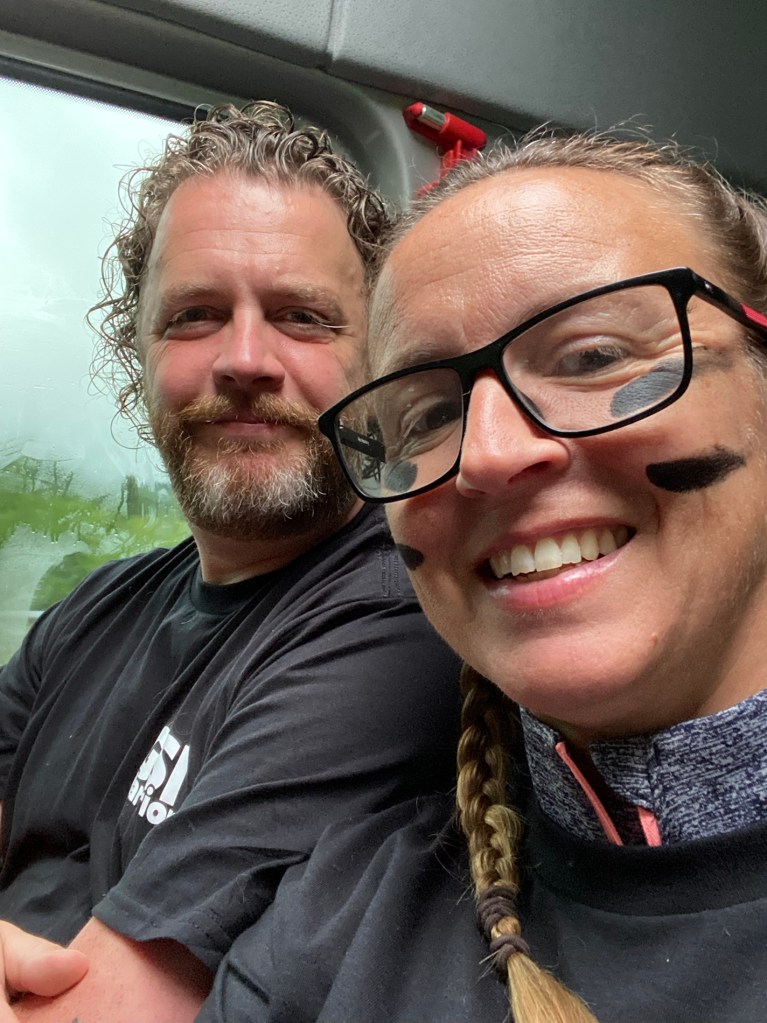 Iām sure the face paint resembled a kids face painted tiger rather than camouflage but heyā¦.. we got a minibus down to Drumlanrig Castle where Tough Mudder is staged.
