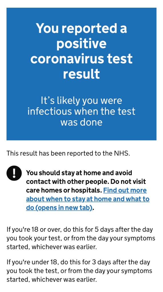 It makes me laugh that it says⦠itās likely you were infectious when the test was done.