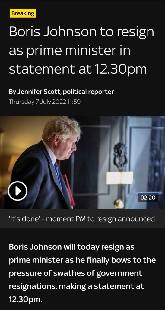 A quick mention about Boris Johnson’s resignation today.