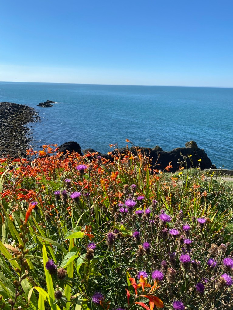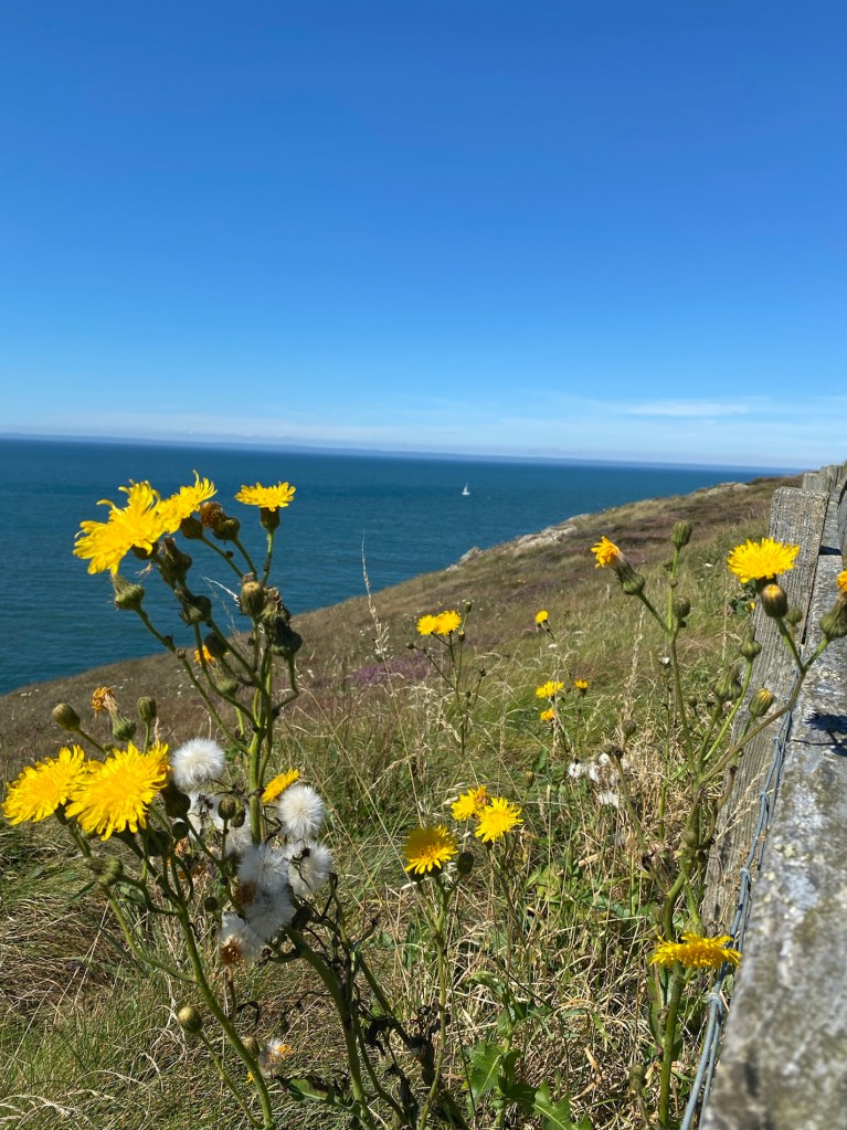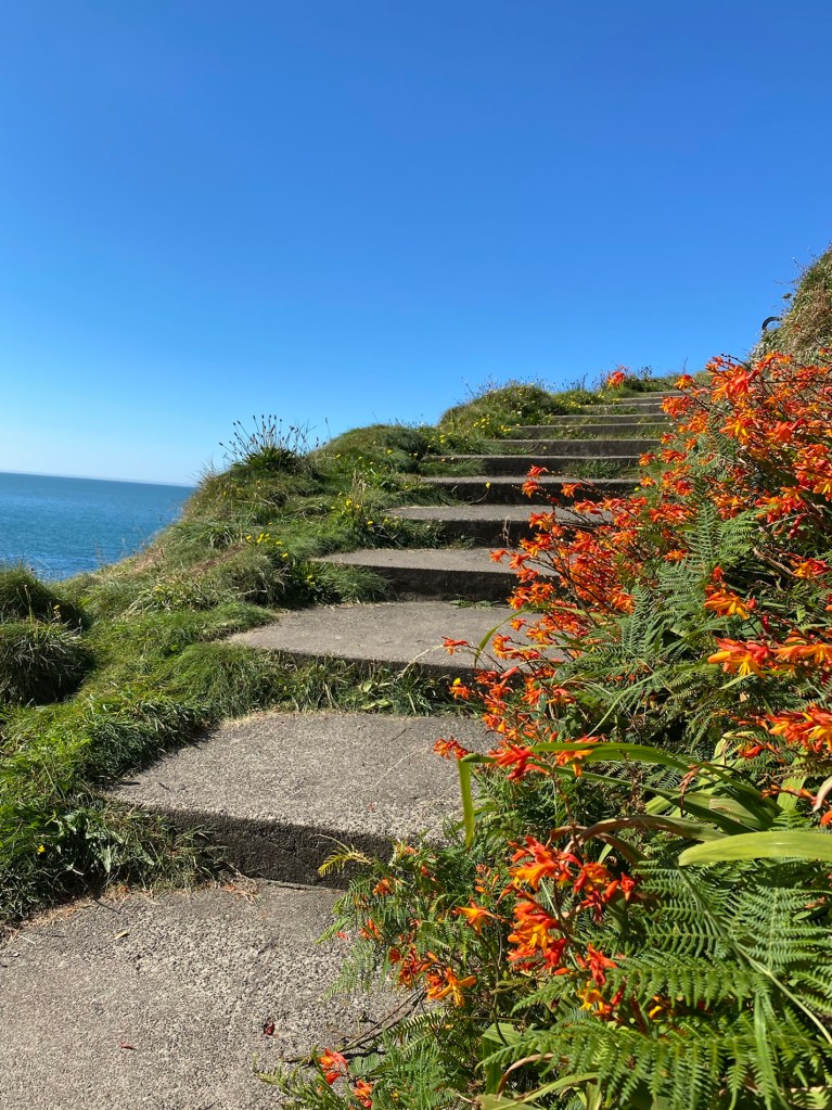 Even the steps are beautiful with the wild flowers against the deep blue of the sky and the sea. There are stunning views from the top of the cliff.