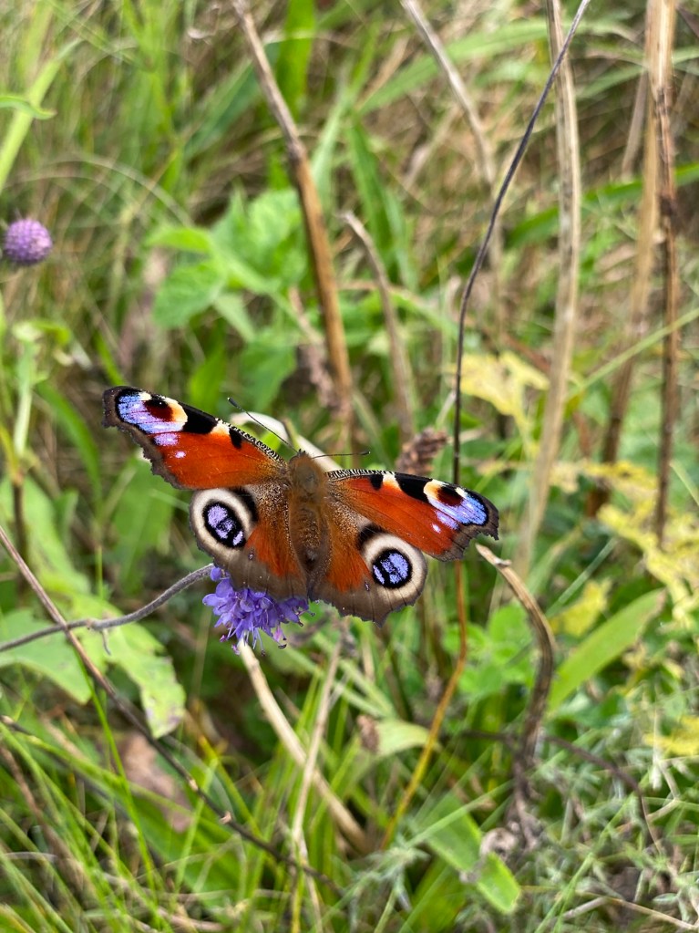 I took the dogs up the hill for a run and focussed on a beautiful butterfly while they ran around in the fields.
