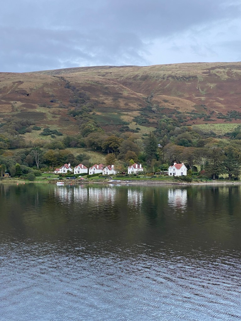 As we sail down the East Kyle we spot these white houses on the mainland near Colintraive. Apparently these were built for 6 daughters and their husbands but the father didn’t approve of one of the marriages so one of the houses is built behind the others and not in the obvious space. Fascinating!!