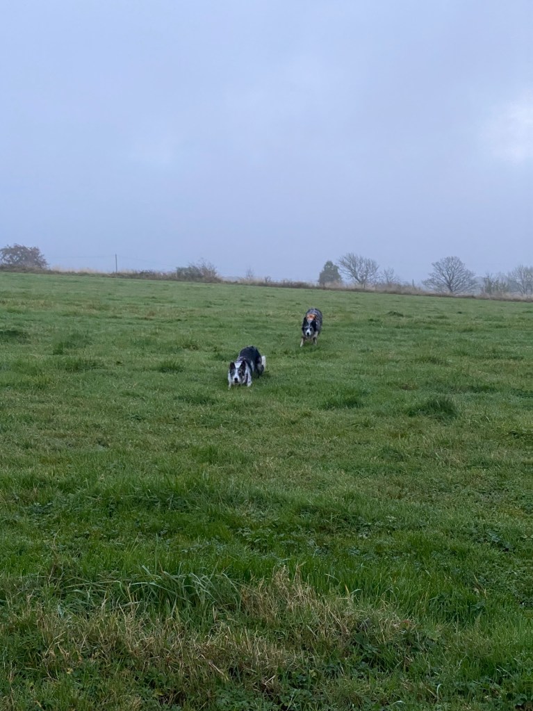We hadn’t been out for much more than 5 minutes when the hail shower hit…. They were big hail stones and they were sore! I started laugh screaming and the dogs didn’t like it one little bit, they all cooried into me and I hunched over the three of them to protect them but the hail stones were really sore!! I tried to turn around to go back home but I couldn’t walk into them, just had to turn my back until it stopped. We cuddled into a hedgerow! All the dogs tails were curled right under them…. Poor souls. I was drenched and freezing but carried on our walk as we couldn’t really get any wetter.