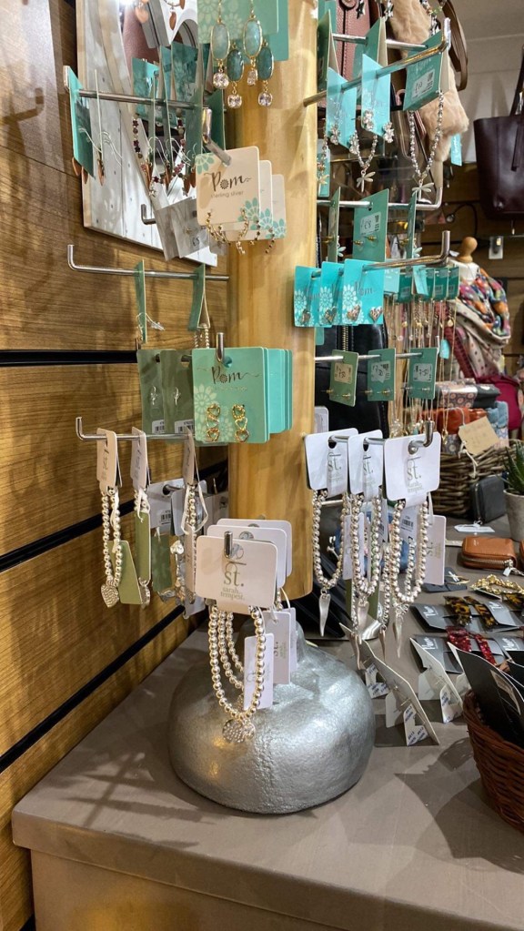 We have new jewellery in which I priced up before putting it out on display… the lovely chunky silver bracelets at the bottom of the stand.
