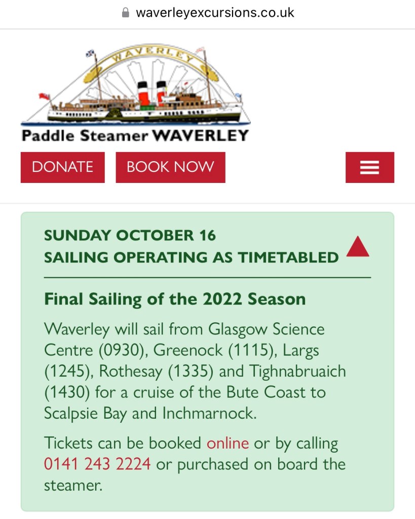 We have a minibus picking us up at 11am at the Gateside inn to take us to Largs where we board the PS Waverley at 12.45.