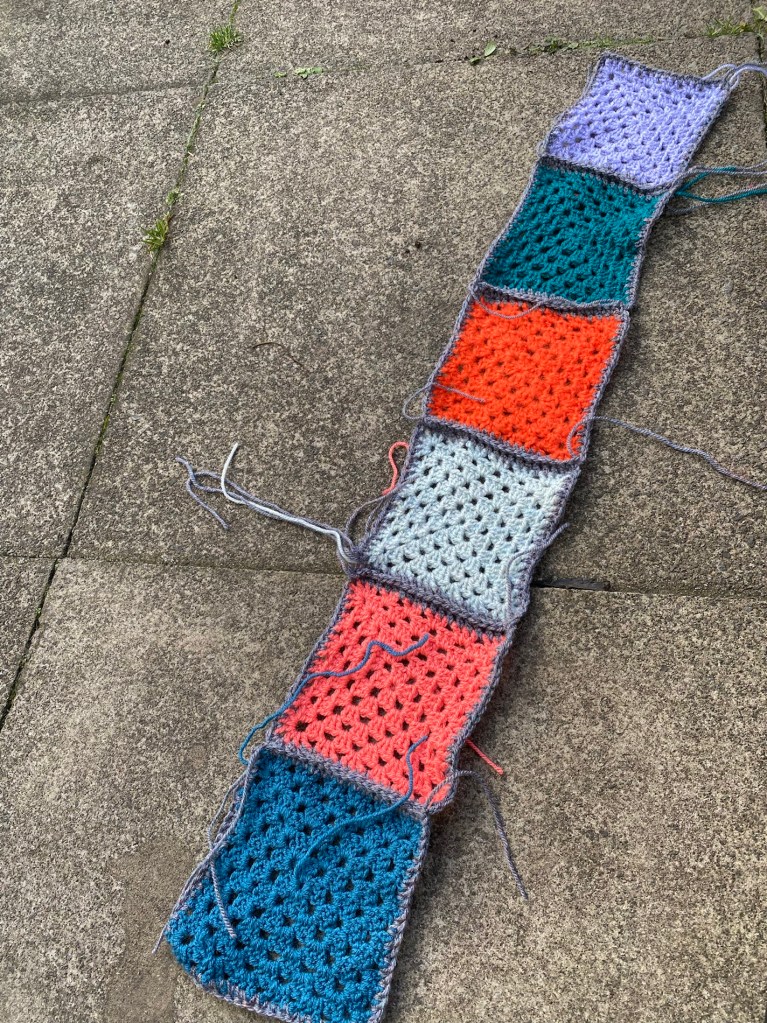 Iāve joined the first row of my new blanket and Iām really pleased with it. Itās a new stitch (for me) that raises the join between the colours. It makes me smile as it starts to come together.