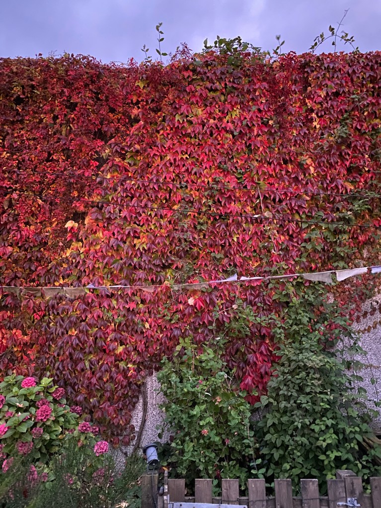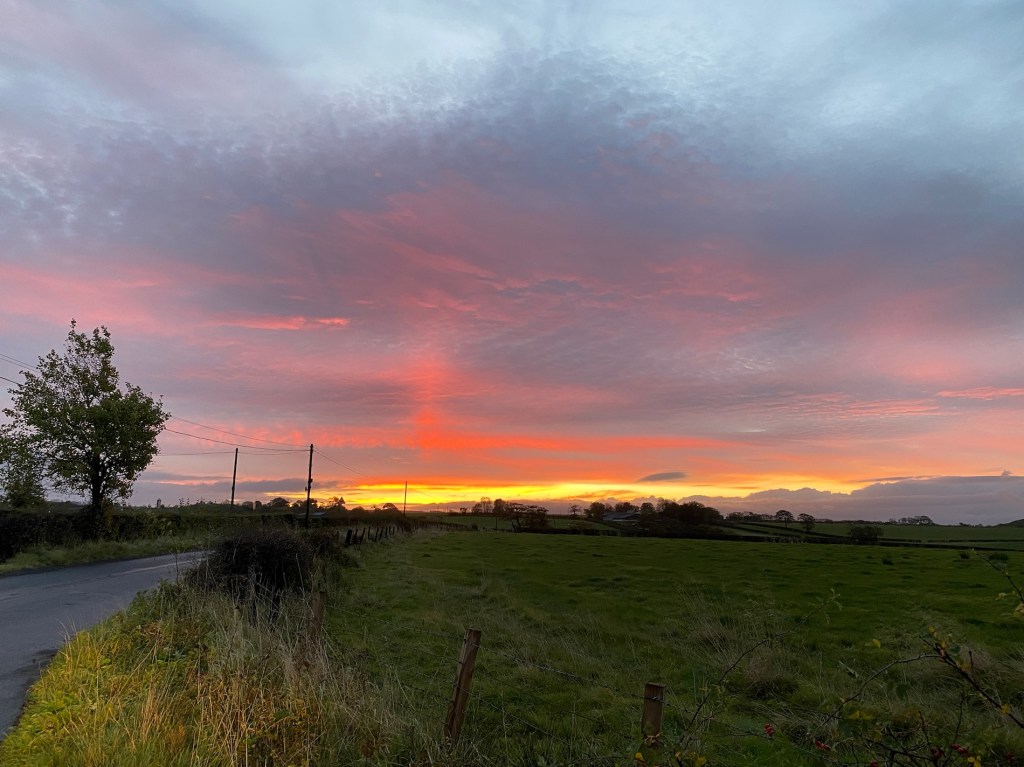 So back to this morning, I got the dogs up and outside early and I sat in the garden and watched the sky turn pink before sunrise. The photos look orangeā¦. Honestly this was very pink!