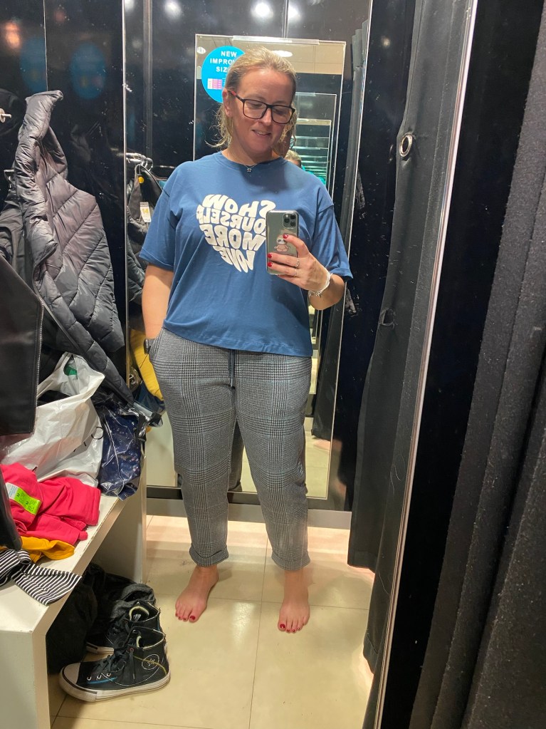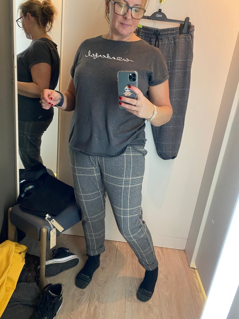 I went to my friend Gemma’s straight from work. She very kindly agreed to take up my trousers for my outfit at the weekend. She did a great job. I love them!