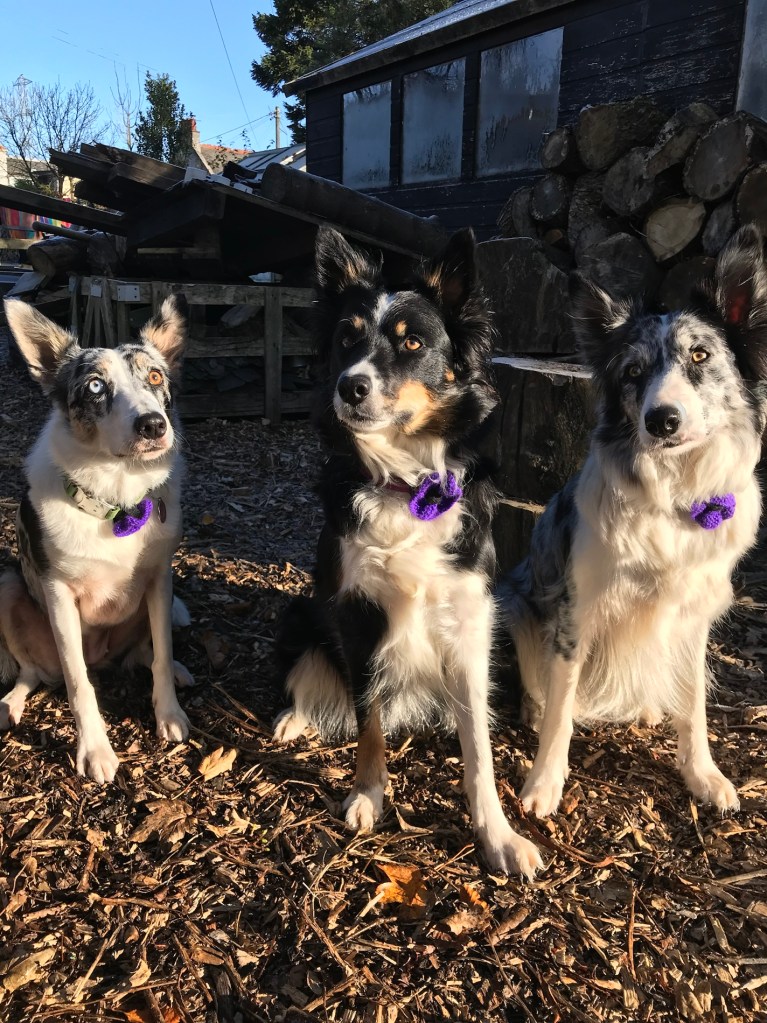 Every year I try to do a new purple poppy photo shoot in memory of all the animals that are involved in war and in service but today did not go as planned…. I couldn’t get the 3 of them together at all. The excitement of having Cookie here seemed to knock any obedience on its head.
