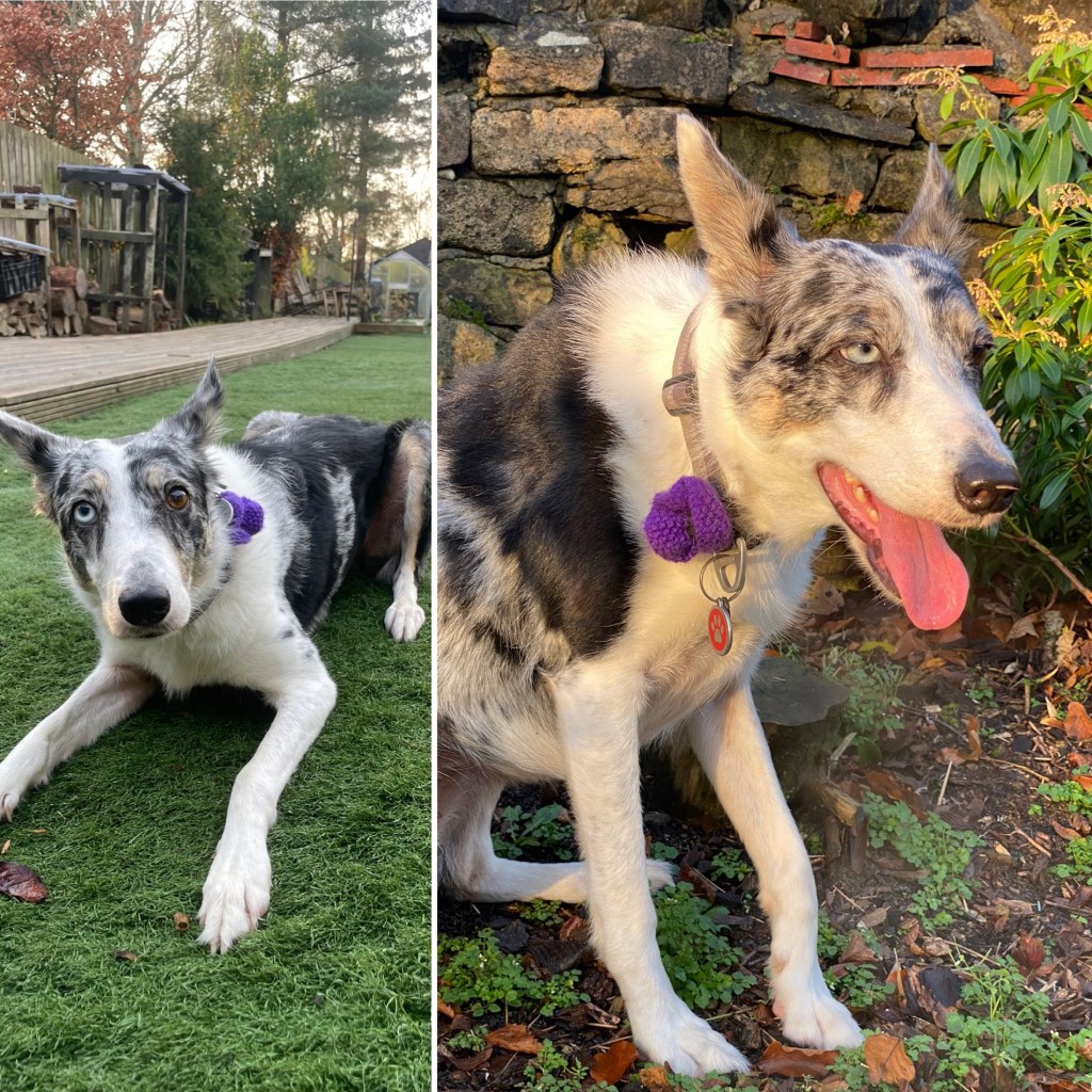 Every year I try to do a new purple poppy photo shoot in memory of all the animals that are involved in war and in service but today did not go as planned…. I couldn’t get the 3 of them together at all. The excitement of having Cookie here seemed to knock any obedience on its head.