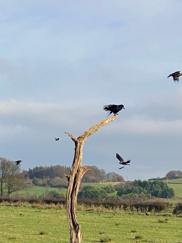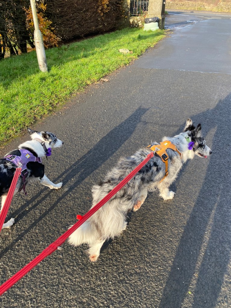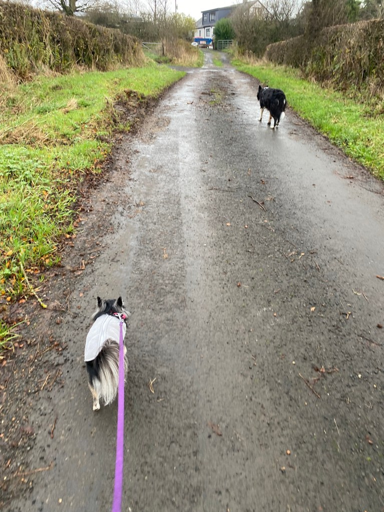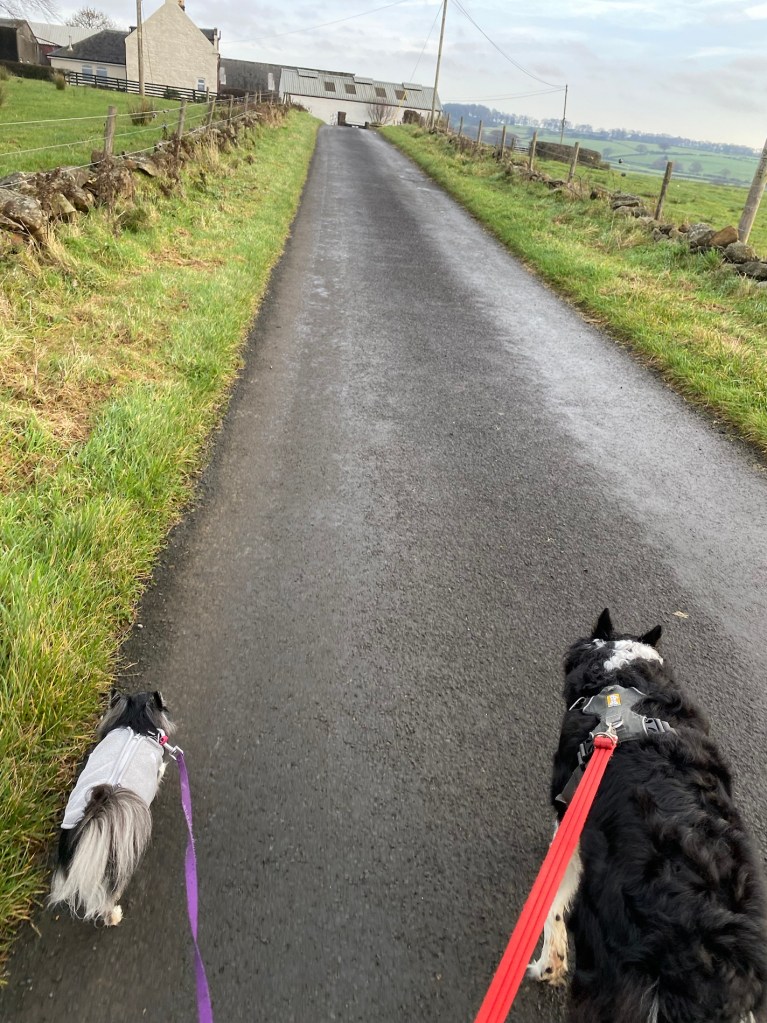 Craig’s wood cutting with the village wood cutters this morning so I set off out with Cookie and Calaidh.