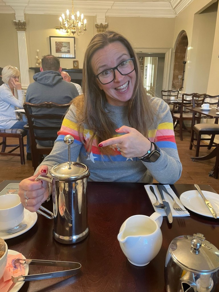 The bed was so white and dog hair free. 😆 I had the best sleep and we had a good long lie. Breakfast was at 9.30am and yes, I forgot to order decaf coffee 🤦🏻♀️😆