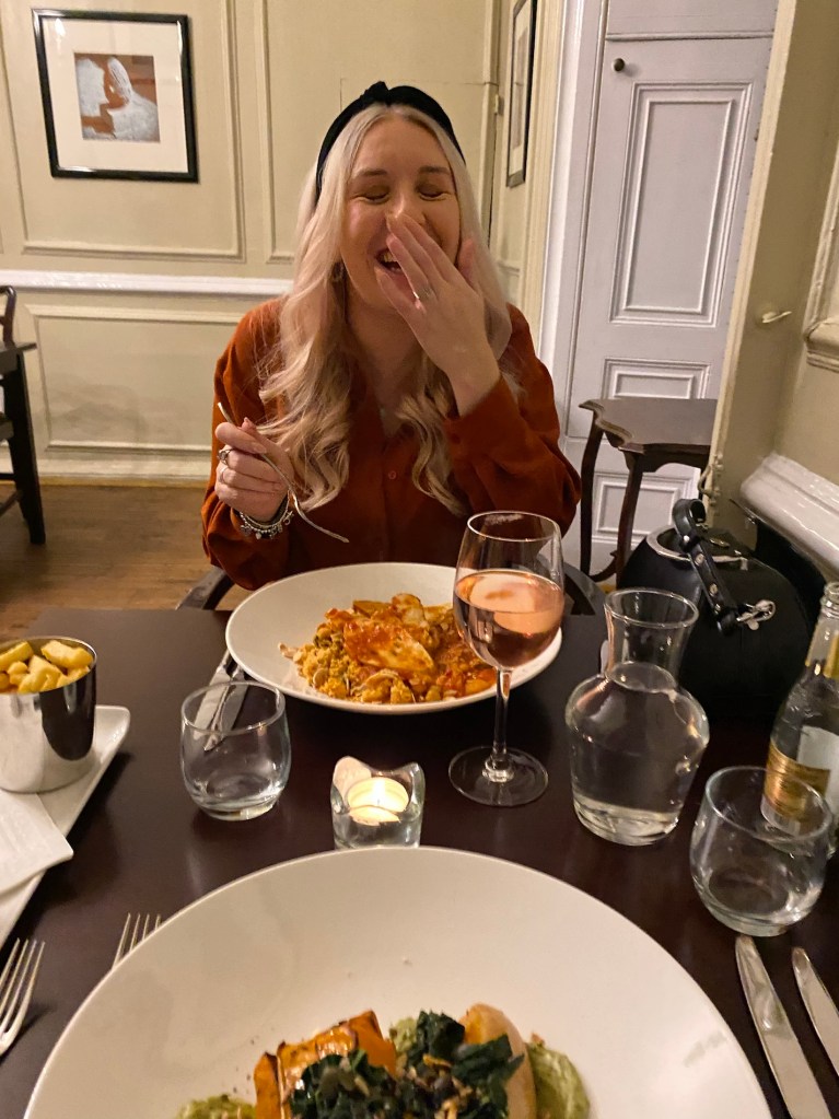 We headed straight to the room and got into fleecy jammies that Claire had bought specially for the occasion. I had some Rosé Nozeco as we got ready.