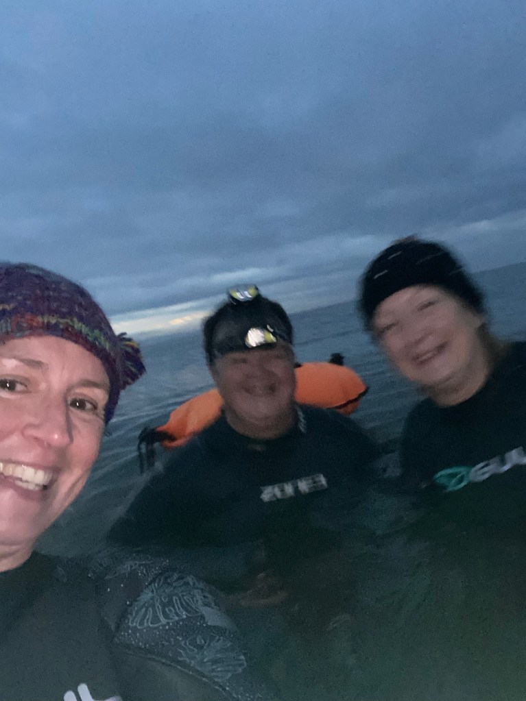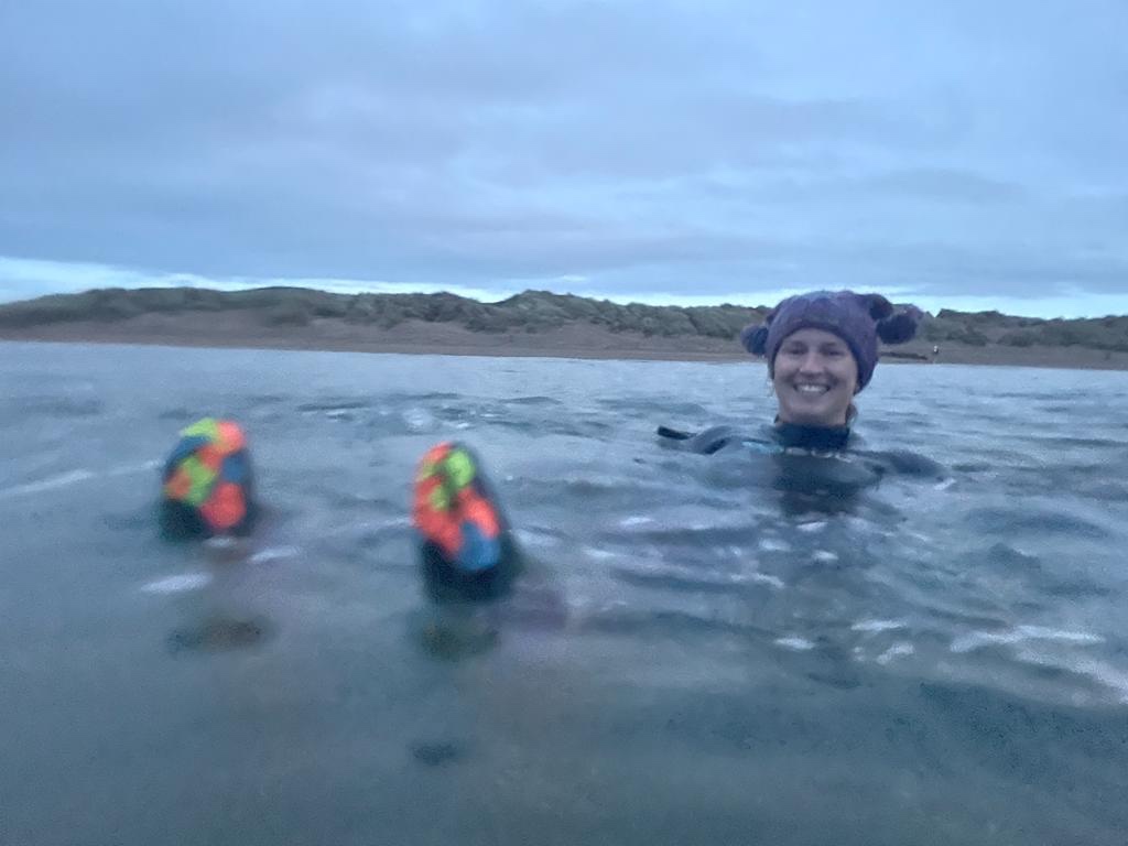 Eileen lent me a spare pair of wetsuit gloves which really helped but NOTHING prepared me for the cold on my feet. I had to walk back out of the sea as quickly as I walked in.