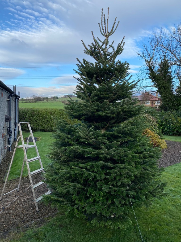 Rachel two doors down is working on the village Christmas tree today. It’s such a beautiful tree from the Gateside Plant Centre, but sadly a huge section of the lights are not working. She’s having to order new lights…. It still looks lovely.