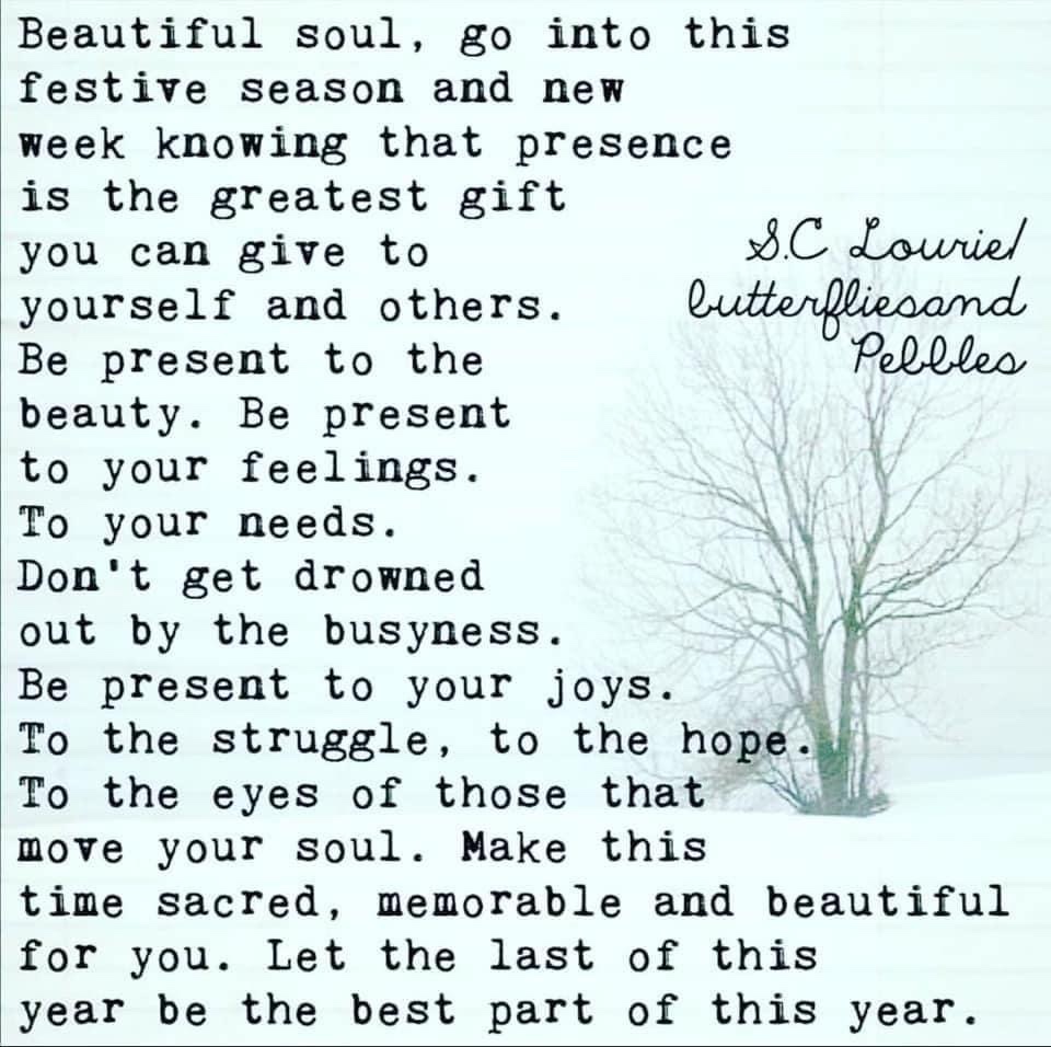 It’s not the holiday you are looking forward to. Not the regrets that you have about the past. But here. Now. Right now. This is your life and it’s up to you to choose what you make of it.