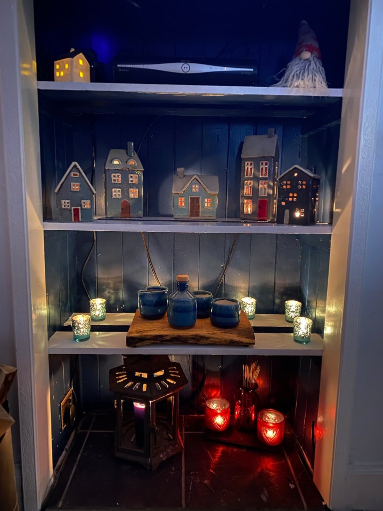 We’re not having a tree this year in an effort to save money but we’re enjoying the lights and candles instead.