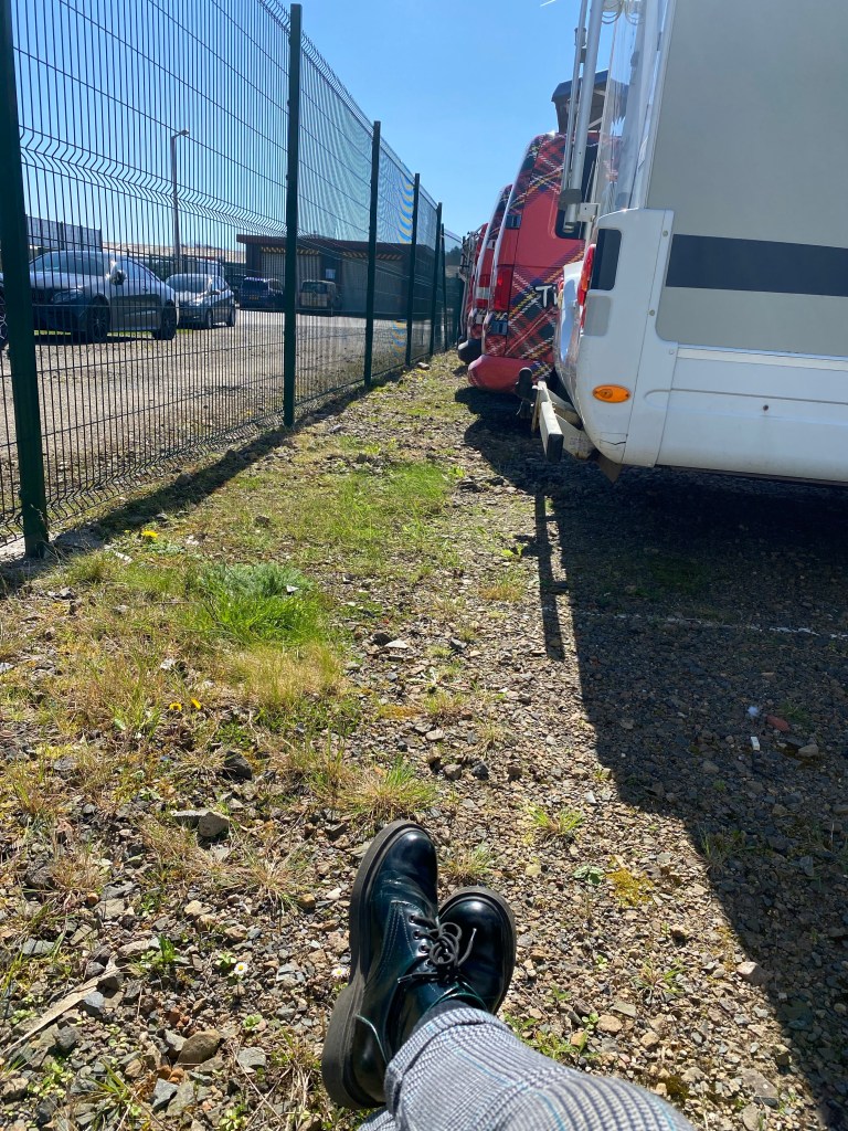 Ellison and I actually managed to sit out at lunch, in a wee sheltered spot. Not exactly a stunning view 😂