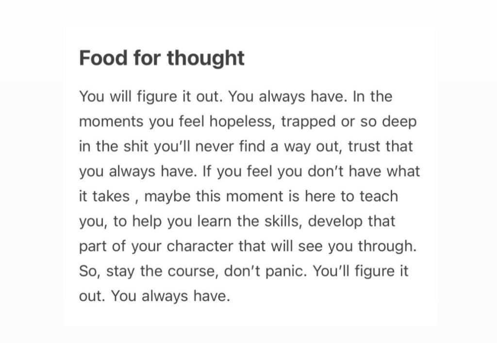 I’ve been concentrating on “these feelings are temporary” and “I’ve gotten through these challenges before and I will get through this today”.