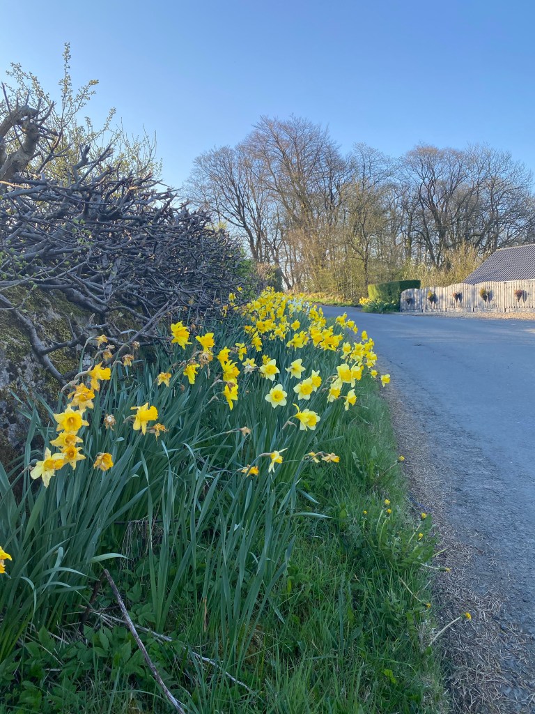 I lay and never moved, trying not to laugh, despite Bhruic trying her best to get under the covers to lick my face. 🤦🏻♀️😆 She gave up pretty quickly, but Freya lay down and stayed for a while. Calaidh also came in and lay under the bed for a bit. She’d found a peaceful haven.