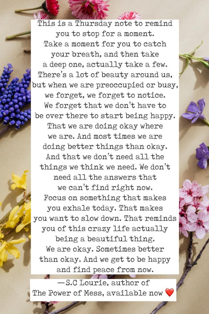 I feel like she writes everything that I need to see! Isn’t that another lovely one she’s a fresh follow on FB and has just brought out a book called The Power of Mess.