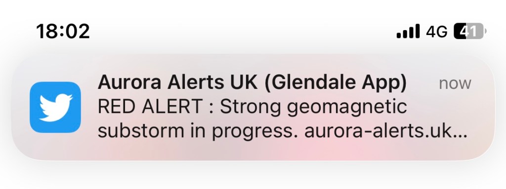 Oh my god red alert for Aurora just came through!!!!!